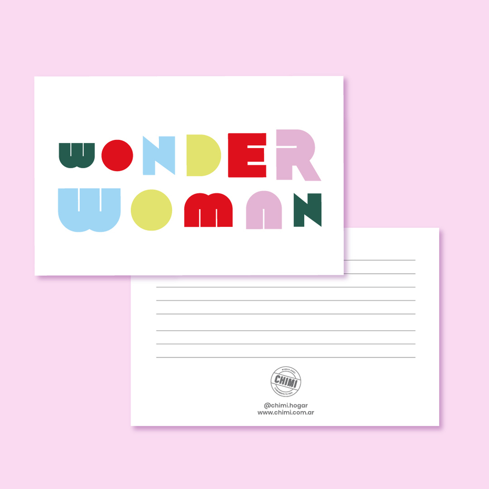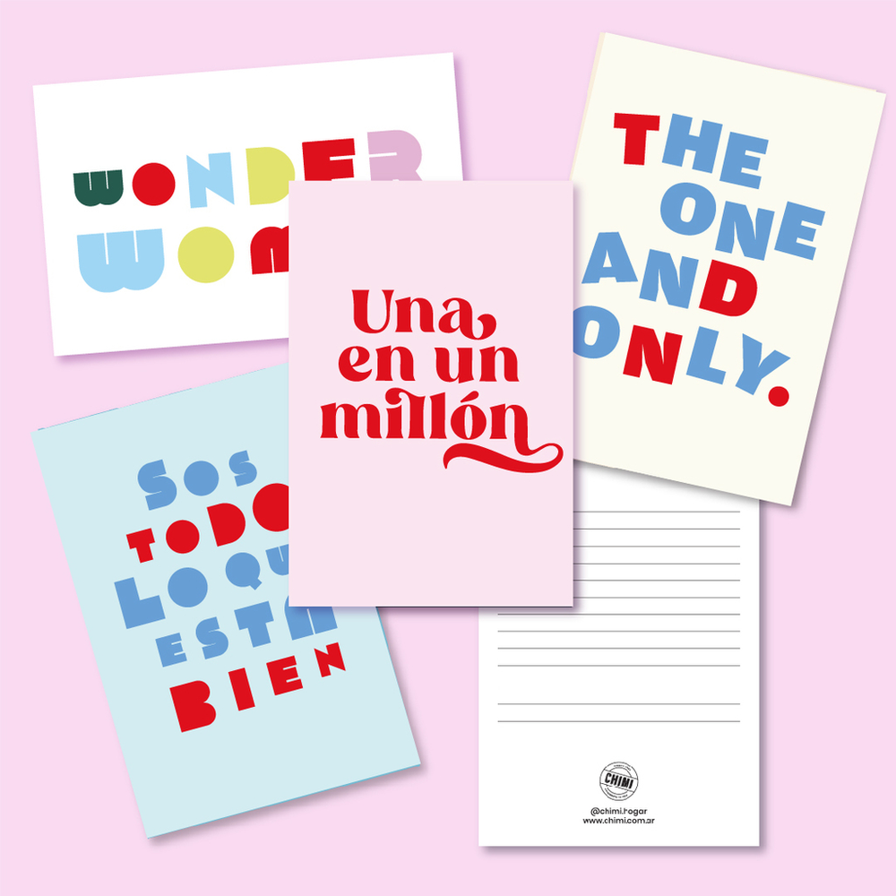 Set x 24 Tarjetas con las siguientes frases pensadas para días especiales "Wonder Woman", "Una en un millón", "The One and only" "Sos todo lo que esta bien", al dorso tienen unos renglones para escribir dedicatorias.