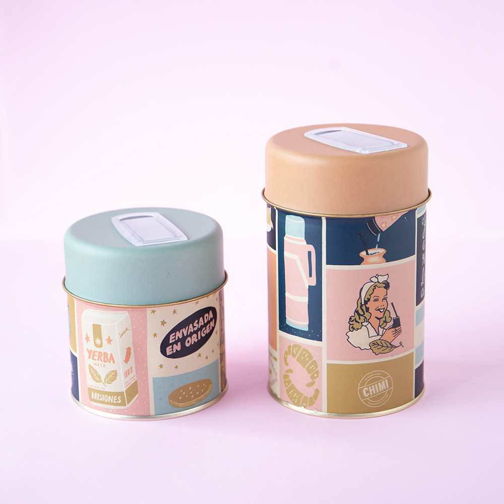 Set de 2 Latas de hojalata con pico vertedor plástico prácticas para contener yerba/azúcar u otros alimentos. Útil para el hogar como objeto decorativo y llevarla con vos al picnic, paseo o viaje. Un set incluye 1 yerbera y 1 azucarera.