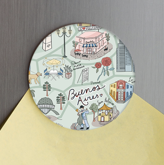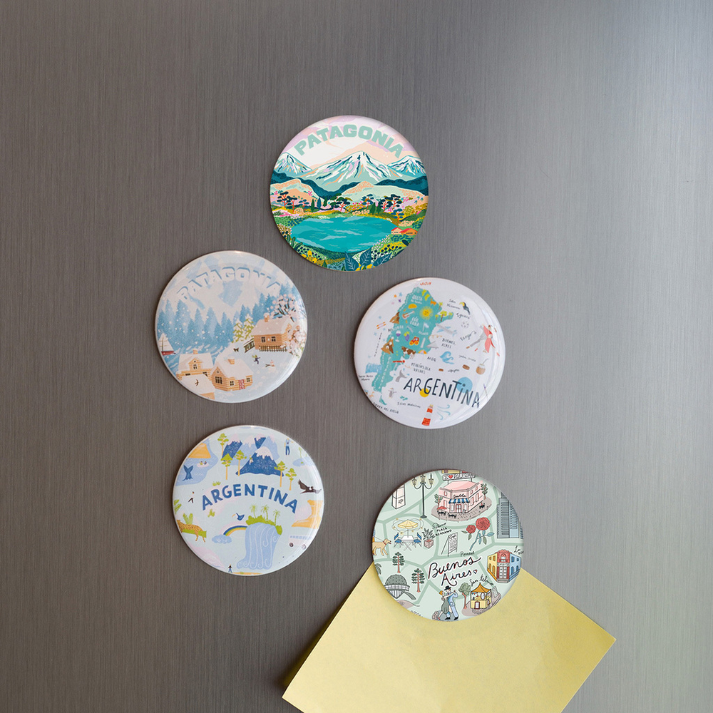 Imanes impresos full color de hojalata 55 mm de diámetro.