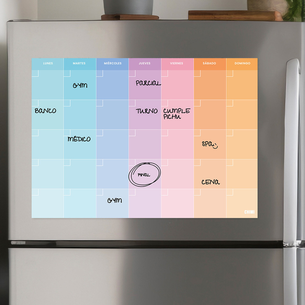 Planificador semanal imantado para la heladera. Ideal para ordenar la semana y que no se nos escape nada.