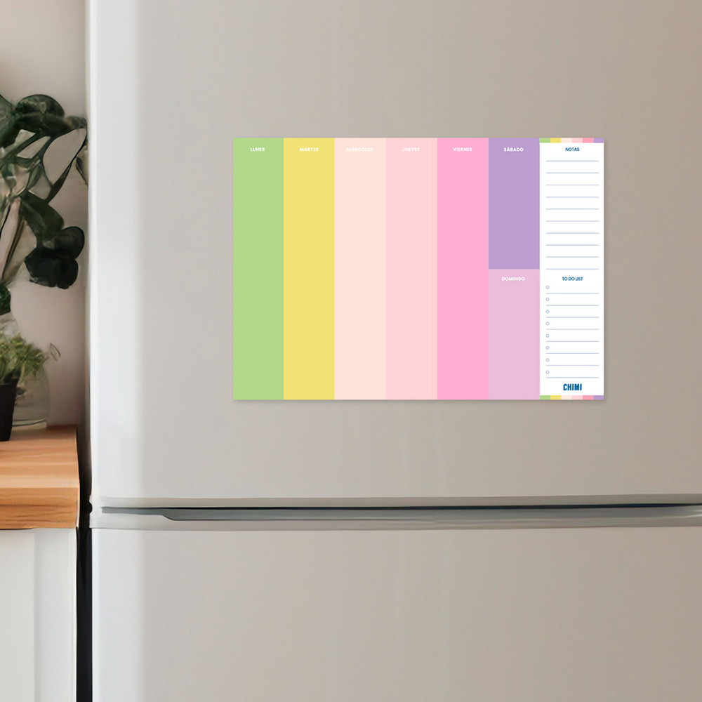 Planificador semanal imantado para la heladera. Ideal para ordenar la semana y que no se nos escape nada.