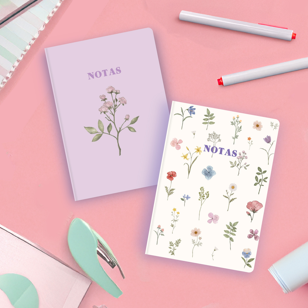 Este pack por 2, incluye una libreta lisa y otra rayada, y los bordes son redondeados.