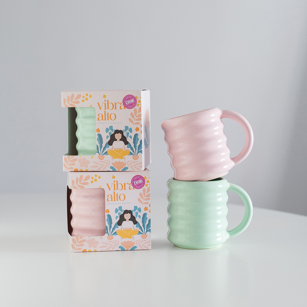 Hermosa taza Michelin en color verde o rosa, 100% artesanal.