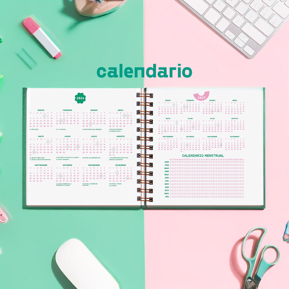 🗓 Calendarios 2026 y 2027: Incluyen feriados para organizarte mejor.