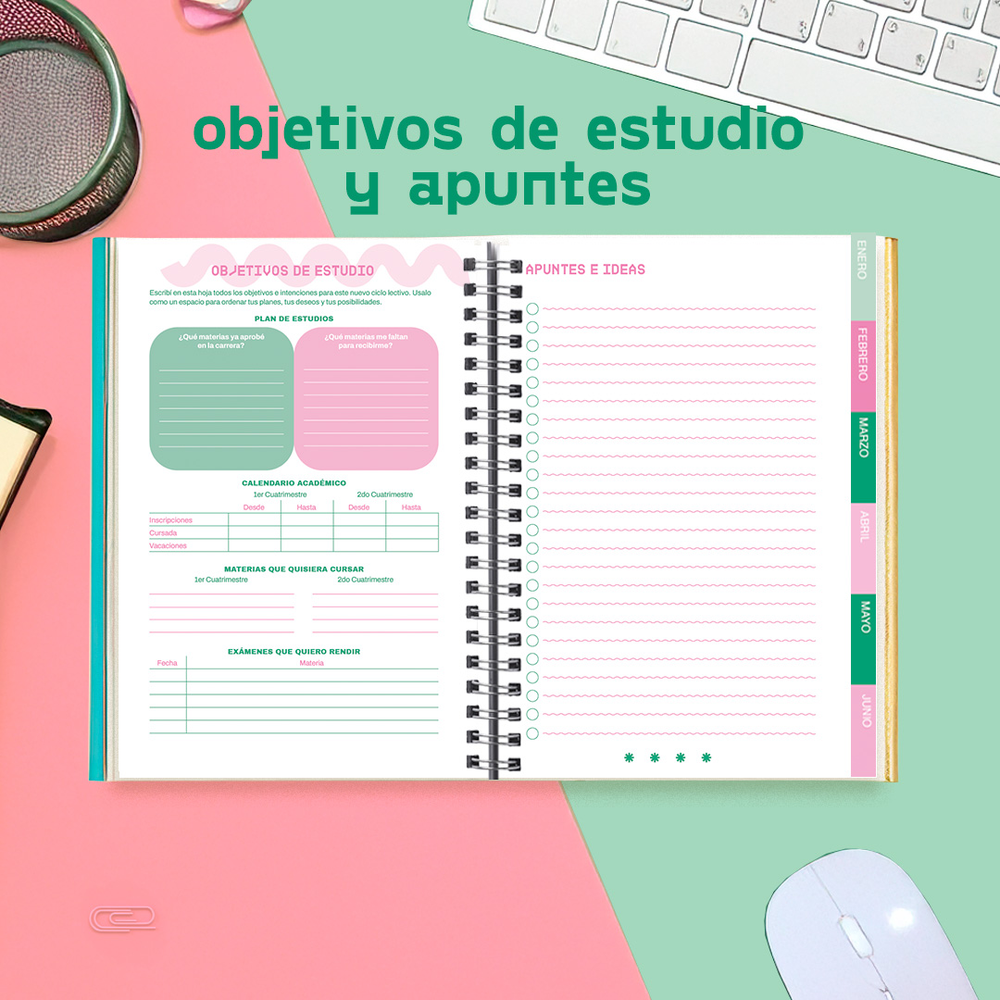 Este año contamos con una agenda pensada para los estudiantes universitarios: tiene el mismo contenido que la agenda Prductividad A5 y se le suma un apéndice con 24 páginas pensadas para los universitarios.