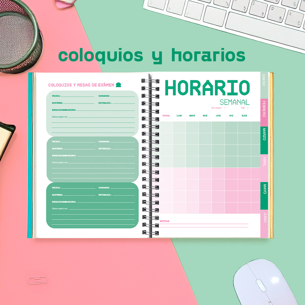 Esta agenda tiene el mismo contenido que la agenda premium a5 pero se le suma un apéndice con 36 páginas pensadas para los profes!!