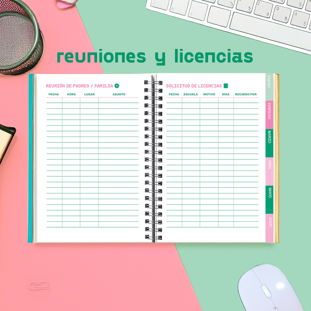 Esta agenda tiene el mismo contenido que la agenda premium a5 pero se le suma un apéndice con 36 páginas pensadas para los profes!!