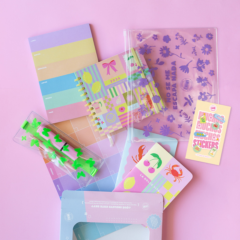 ✨ Set Focus ✨ Porque organizarse puede ser lindo y divertido 💛 Este set tiene todo lo que necesitás para poner tus ideas en orden y cumplir tus objetivos sin perder el estilo. Incluye: 📅 Agenda cuadrada semanal 📝 Planner de papel 🧲 Planner imantado para tener tus pendientes siempre a la vista (¡y pegado en la heladera si querés!). Con marcador 📒 Pack de libretas (52 paginas, una lisa y otra rayada) ✉ 1 Sobre pvc guarda tutti 👝 1 cartuchera 📒1 libreta de stickers ♥ 1 resaltador 🖊 1 lapicera 🥡 1 caja con ventana