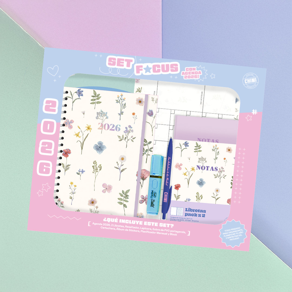 ✨ Set Focus ✨ Porque organizarse puede ser lindo y divertido 💛 Este set tiene todo lo que necesitás para poner tus ideas en orden y cumplir tus objetivos sin perder el estilo. Incluye: 📅 Agenda A5 semanal 100% productividad 📝 Planner de papel 🧲 Planner imantado para tener tus pendientes siempre a la vista (¡y pegado en la heladera si querés!). Con marcador 📒 Pack de libretas (52 paginas, una lisa y otra rayada) ✉ 1 Sobre pvc guarda tutti 👝 1 cartuchera 📒1 libreta de stickers ♥ 1 resaltador 🖊 1 lapicera 🥡 1 caja con ventana