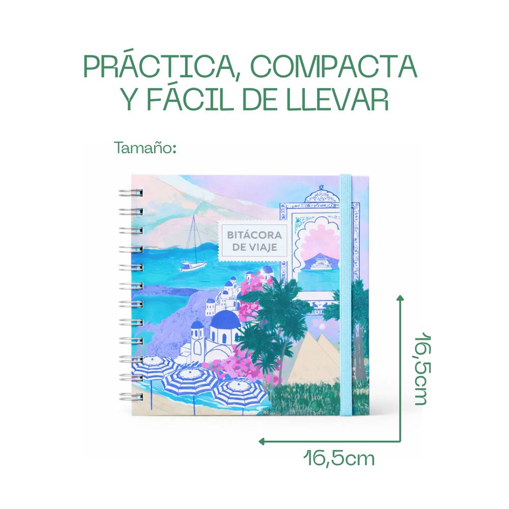 . Tamaño: 17 x 17 cm . Interior: 160 páginas. . Encuadernación: Tapa dura y laminada, super resistente. Anillado y cierre elástico. . Papel: Ahuesado de 80gr. . Trae sobre organizador