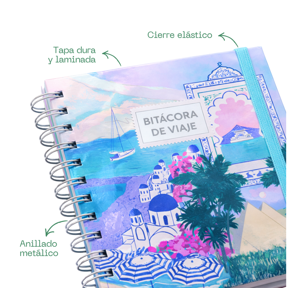 Bitácoras de viaje, ideal para organizar todas tus aventuras y usar como cuaderno para registrarlo todo. Las secciones que incluye son: Checklist / Planificador mensual / Planificador de destinos / Aplicaciones para viajes / Páginas de control de gastos / Mapas y frases inspiradoras y 80 páginas de notas. Con una misma bitácora podes organizar hasta 8 destinos, ideal para viajes largos a varios lugares.
