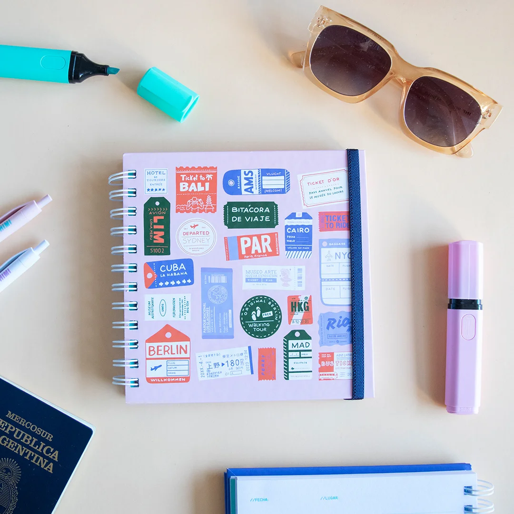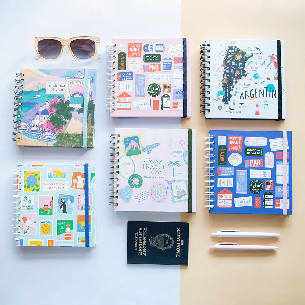 Bitácoras de viaje, ideal para organizar todas tus aventuras y usar como cuaderno para registrarlo todo. Las secciones que incluye son: Checklist / Planificador mensual / Planificador de destinos / Aplicaciones para viajes / Páginas de control de gastos / Mapas y frases inspiradoras y 80 páginas de notas. Con una misma bitácora podes organizar hasta 8 destinos, ideal para viajes largos a varios lugares.