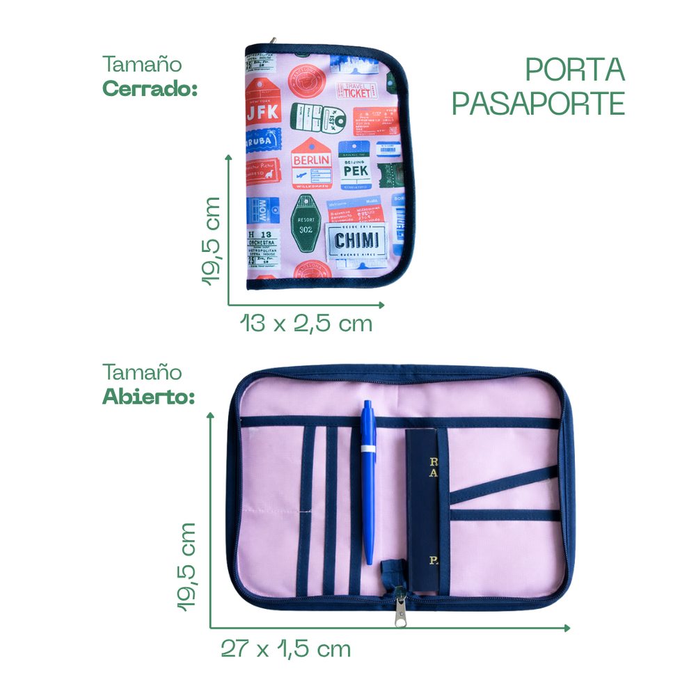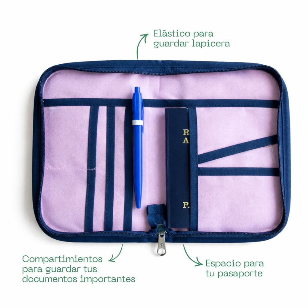 Un aliado ideal para tener todo organizado y a mano. Cuenta con varios compartimentos donde podés guardar tus papeles y documentos: de viaje, del auto, médicos o personales. Trae además un práctico elástico para enganchar tu lapicera, y su interior junto con el cierre combinan con la estampa elegida 💕.
