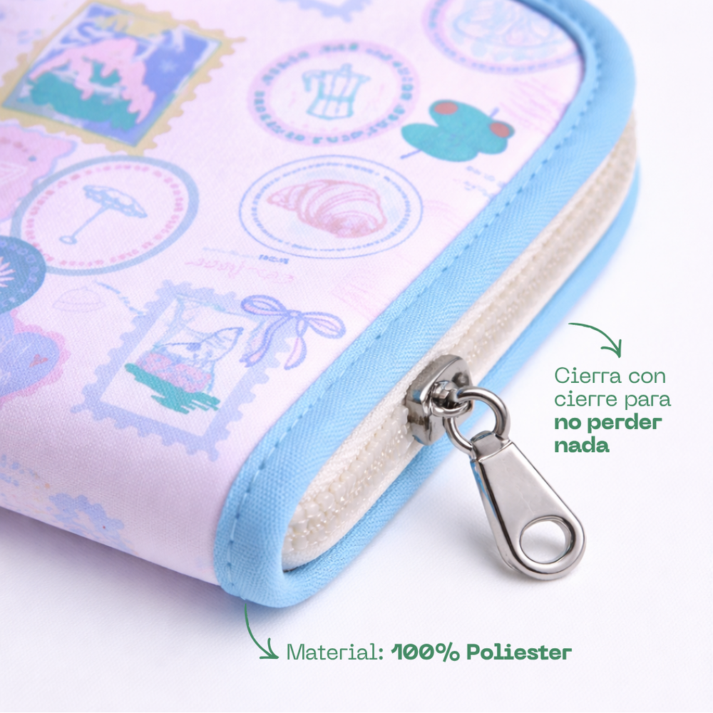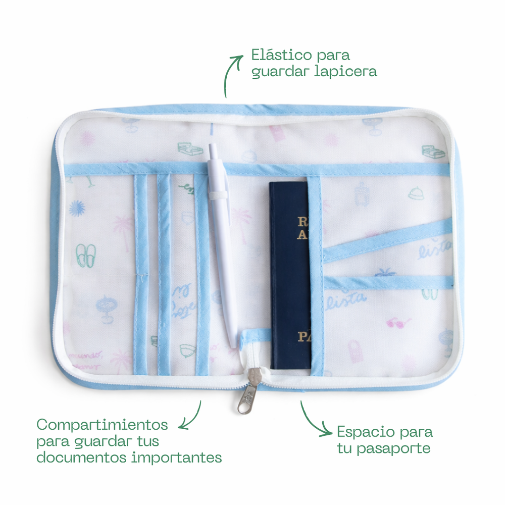 Un aliado ideal para tener todo organizado y a mano. Cuenta con varios compartimentos donde podés guardar tus papeles y documentos: de viaje, del auto, médicos o personales. Trae además un práctico elástico para enganchar tu lapicera, y su interior junto con el cierre combinan con la estampa elegida 💕.