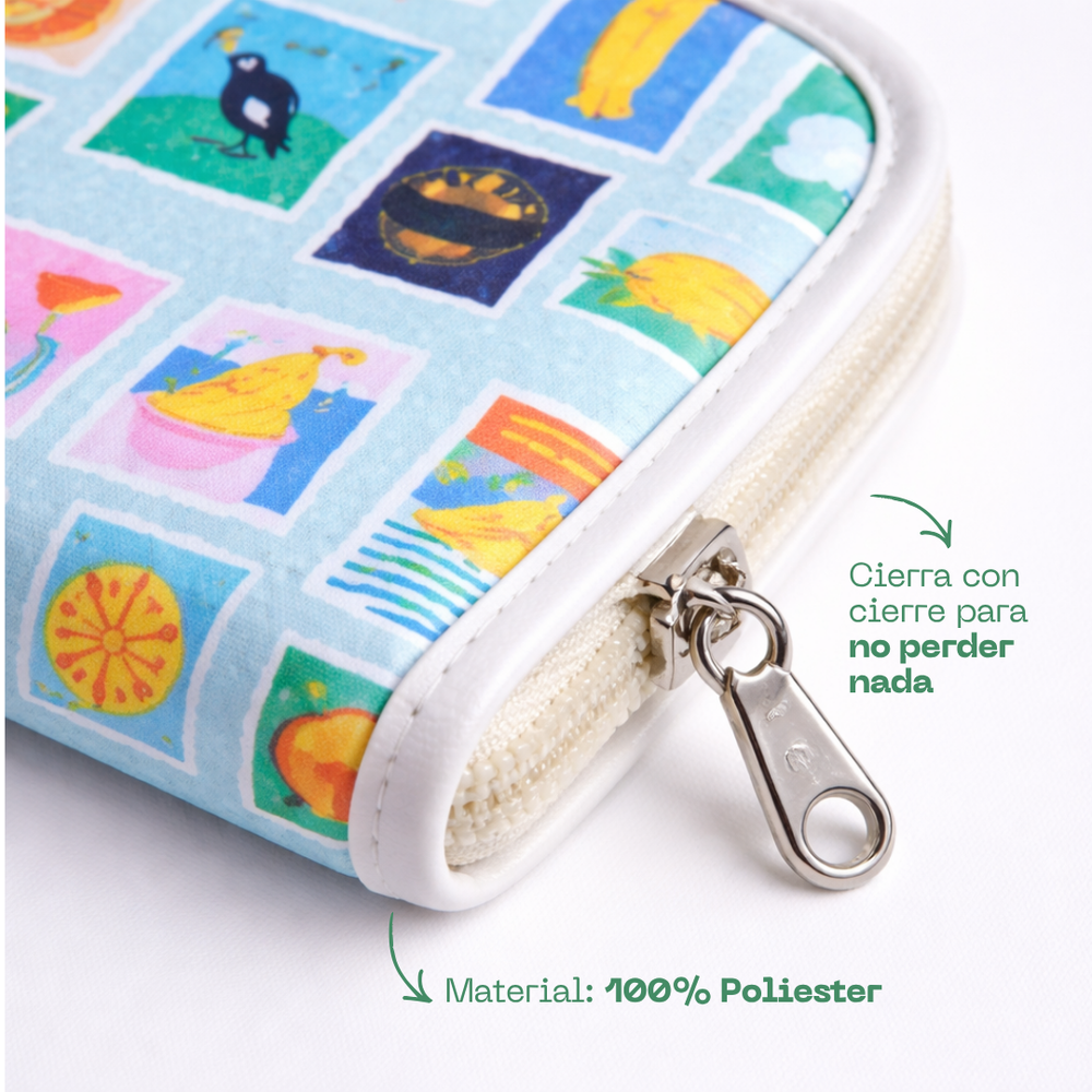 Un aliado ideal para tener todo organizado y a mano. Cuenta con varios compartimentos donde podés guardar tus papeles y documentos: de viaje, del auto, médicos o personales. Trae además un práctico elástico para enganchar tu lapicera, y su interior junto con el cierre combinan con la estampa elegida 💕.