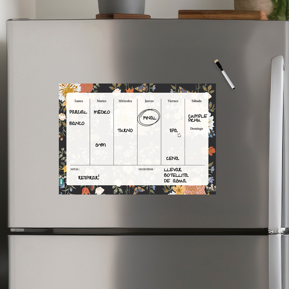 Planificador semanal imantado para la heladera. Ideal para ordenar la semana y que no se nos escape nada.