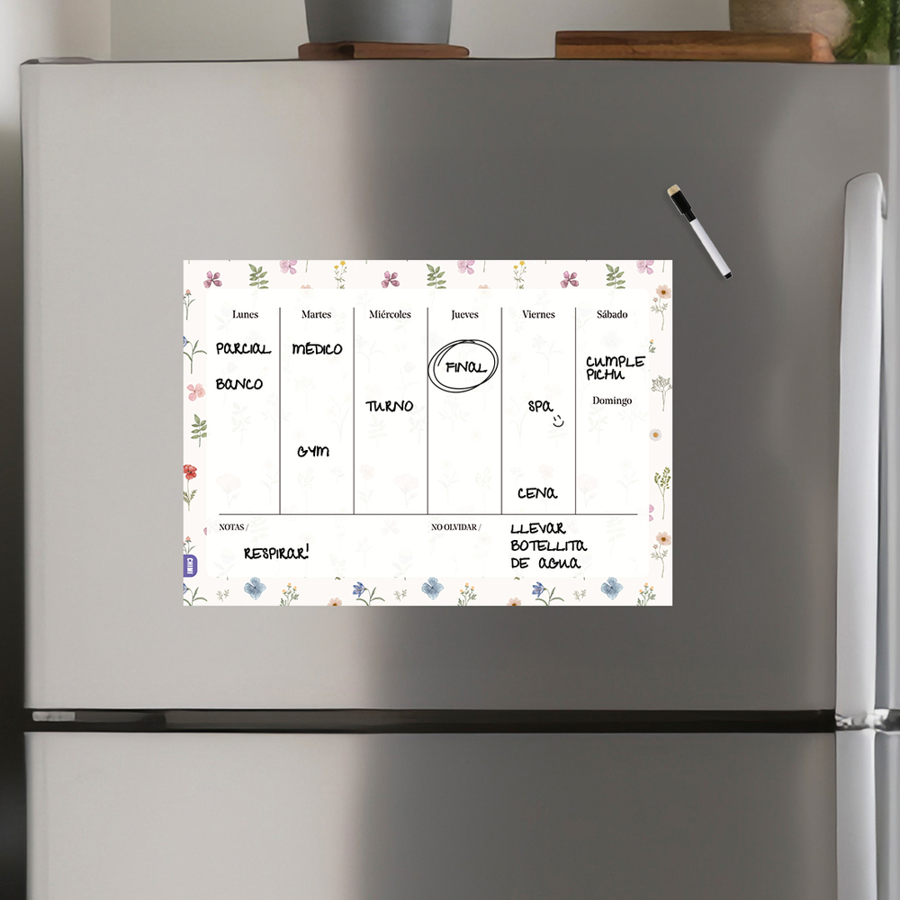 Planificador semanal imantado para la heladera. Ideal para ordenar la semana y que no se nos escape nada.