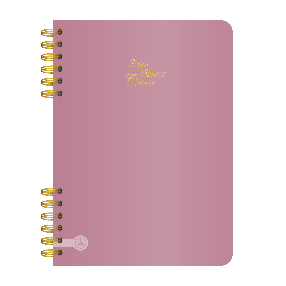 Cuaderno anillado de hojas rayadas con tinta metalizada. Sus medidas son: 15x21 cm.