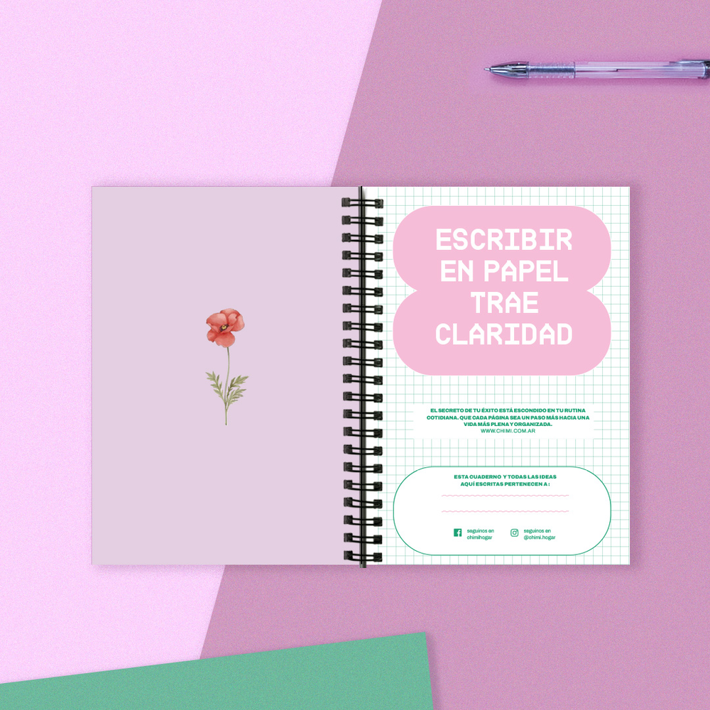 Inspirado en la naturaleza y en los pequeños detalles que hacen grande cada día. Este cuaderno A5 de tapa dura combina diseño, calidad y practicidad en un solo lugar.