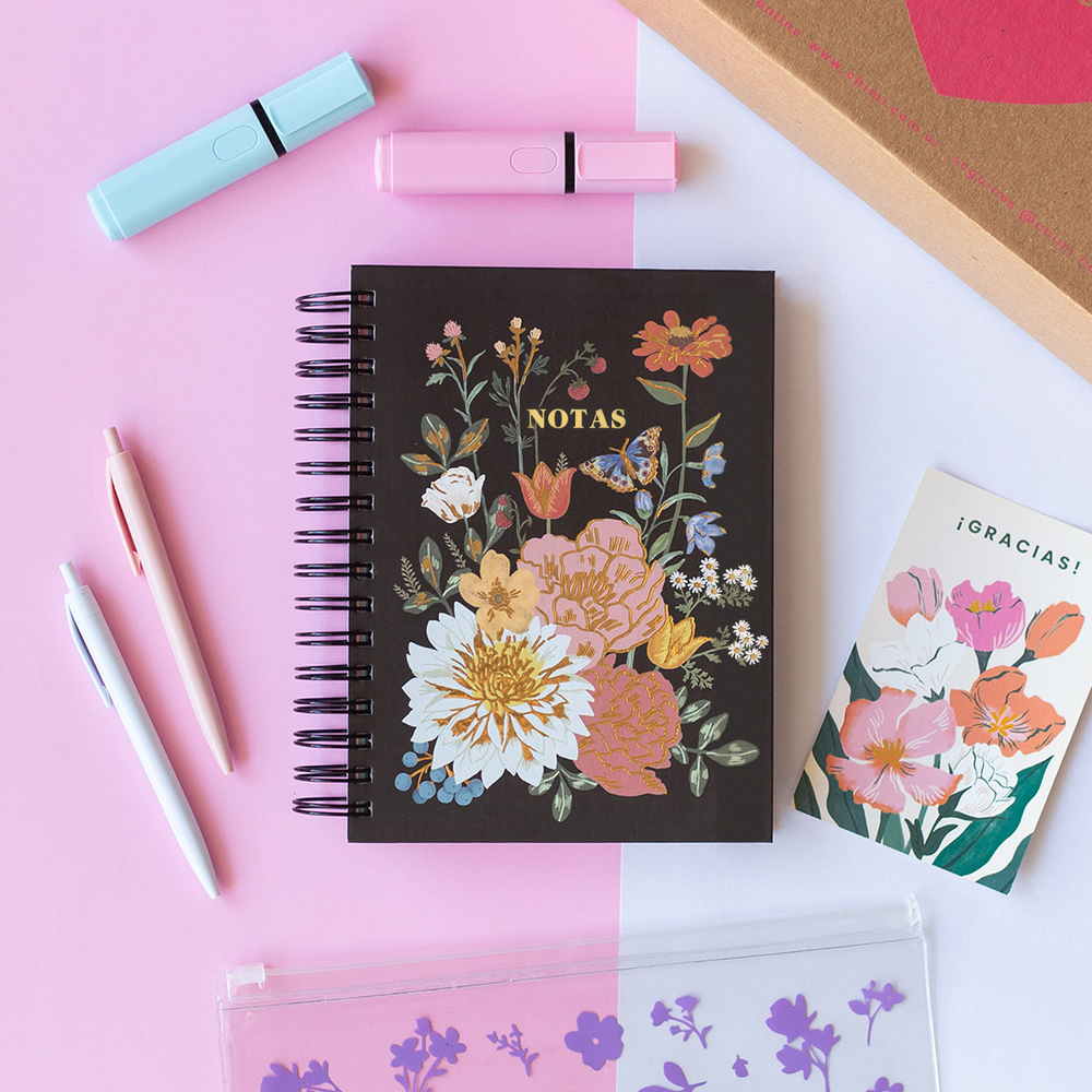Ideal para soltar ideas, escribir, dibujar o planificar con estilo. Su tapa dura con diseño de Jardín Nocturno le da ese toque canchero y elegante que combina perfecto con las Agendas del mismo modelo. Tapa dura y tinta dorada.