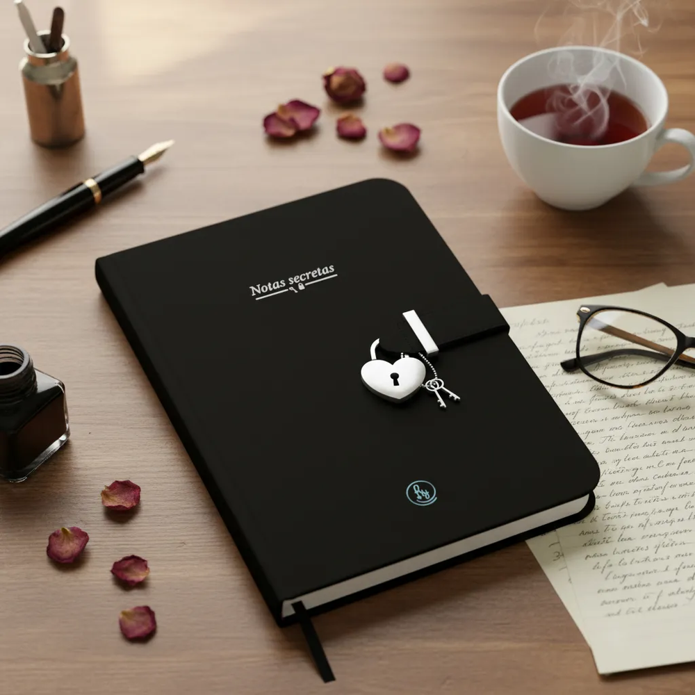 Tapa dura forrado en simil cuero PU, (linea premium) Medidas: 15 x 21 cm. 160 páginas rayadas Papel obra 80 grs. En bolsa con cabezal. Con candado, cinta señaladora, bordes matálicos, sobre y bajo relieve!