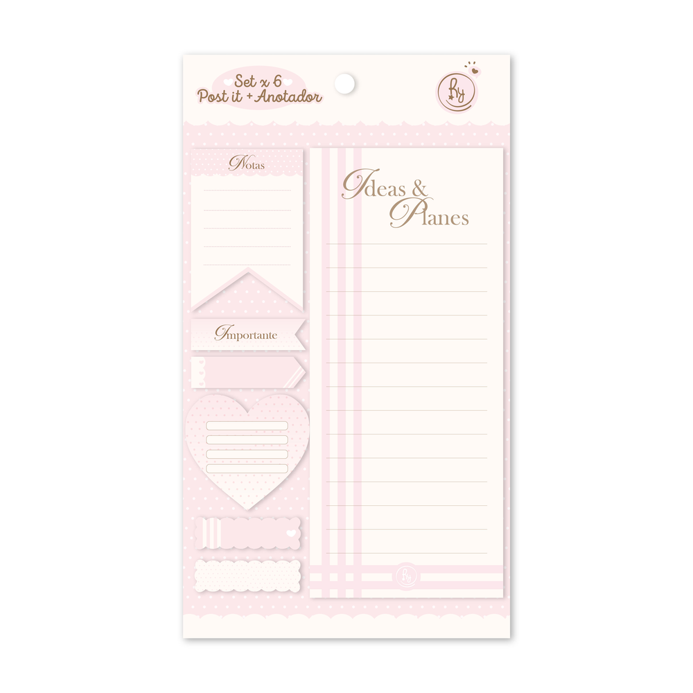 Set x 6 Post it de papel ilustrados. Anotador de 15 hojas rayadas En bolsa con cabezal!