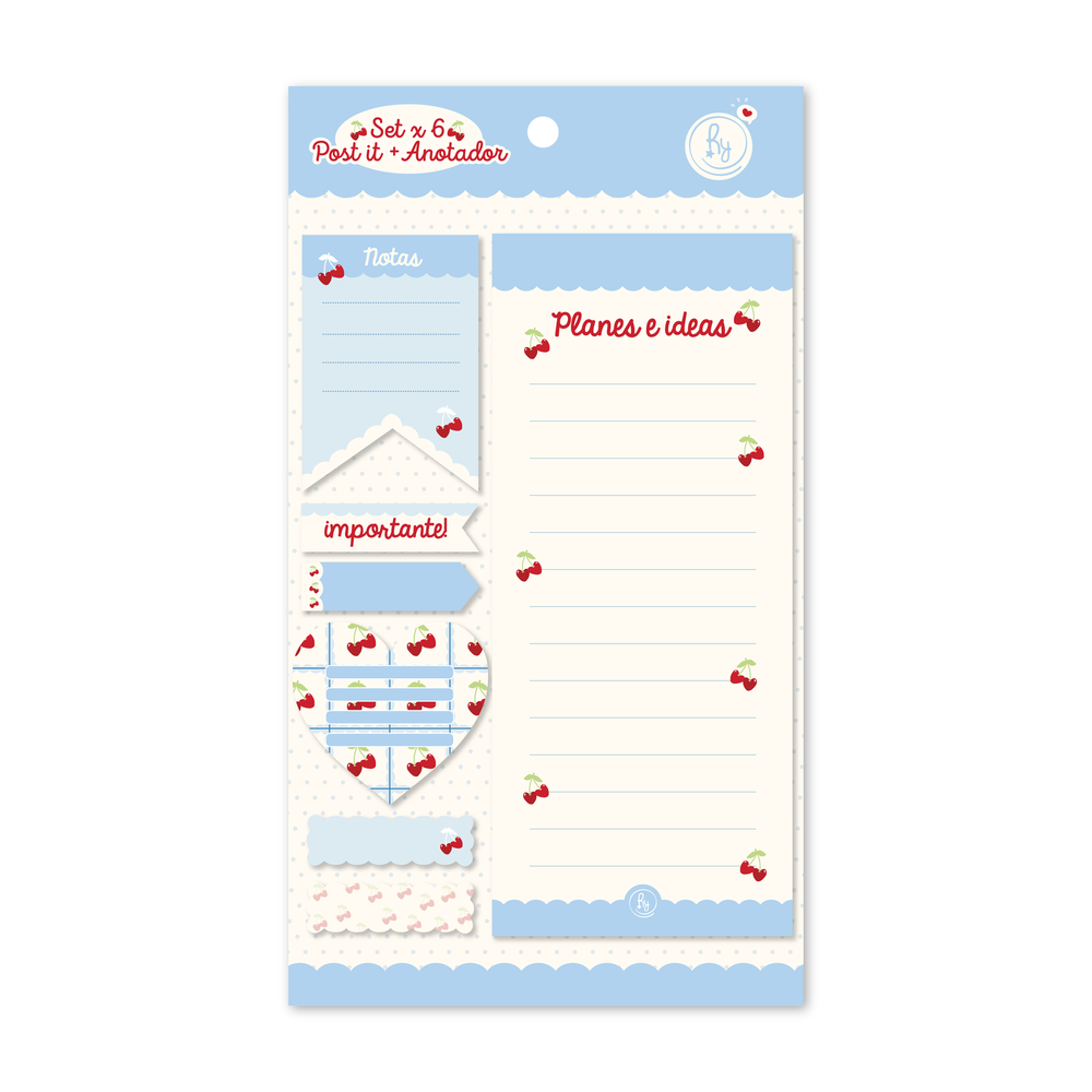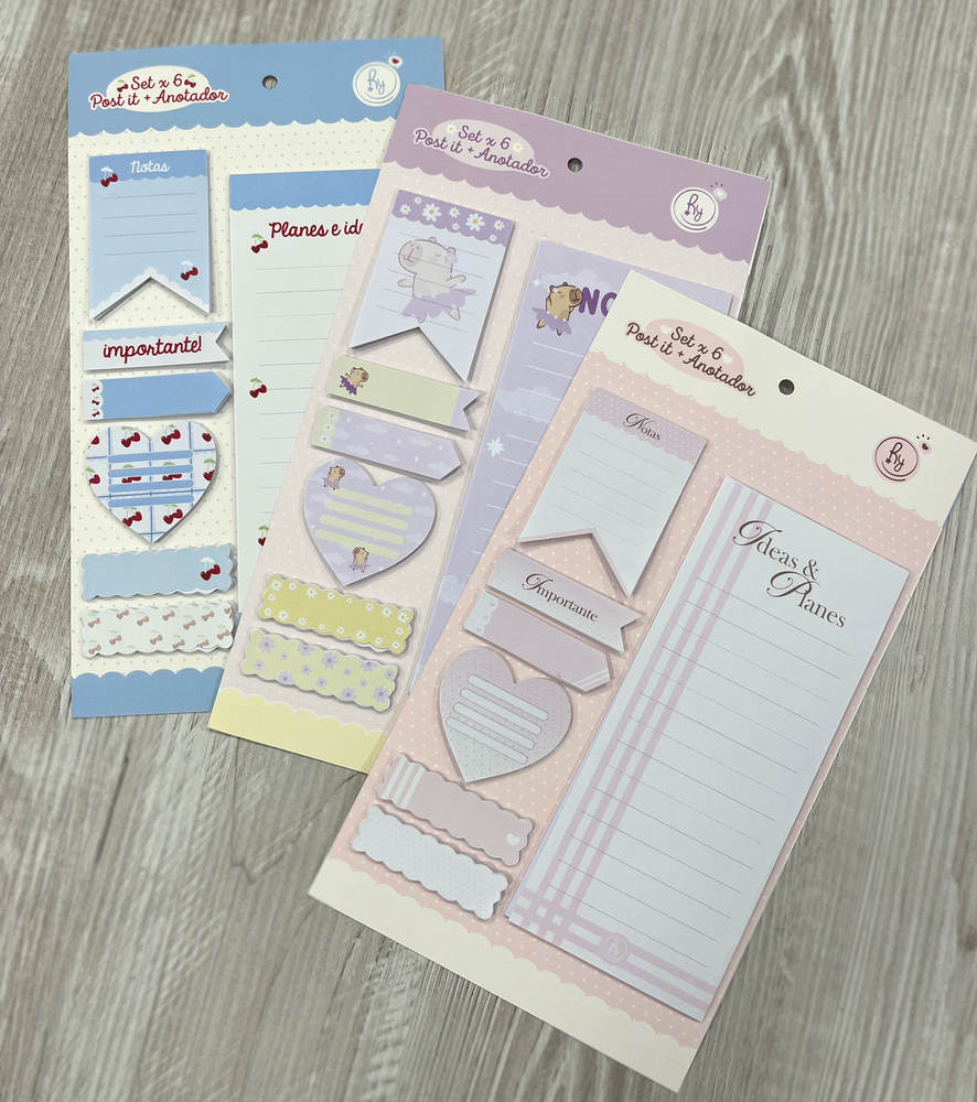 Set x 6 Post it de papel ilustrados. Anotador de 15 hojas rayadas En bolsa con cabezal!