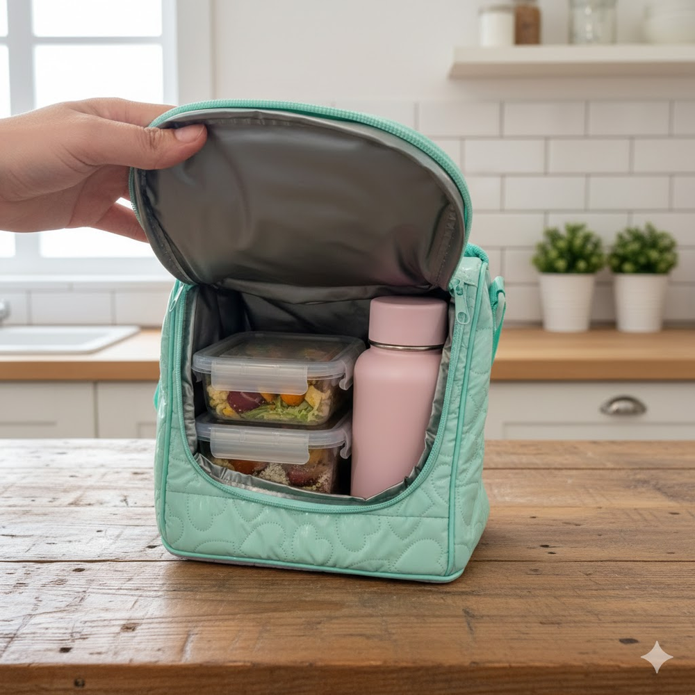 Lunchera térmica con diseño matelassé y apertura frontal para un acceso cómodo. Cuenta con cierre simple, manija superior y correa regulable para mayor practicidad en el uso diario. Ideal para conservar alimentos y bebidas por más tiempo.