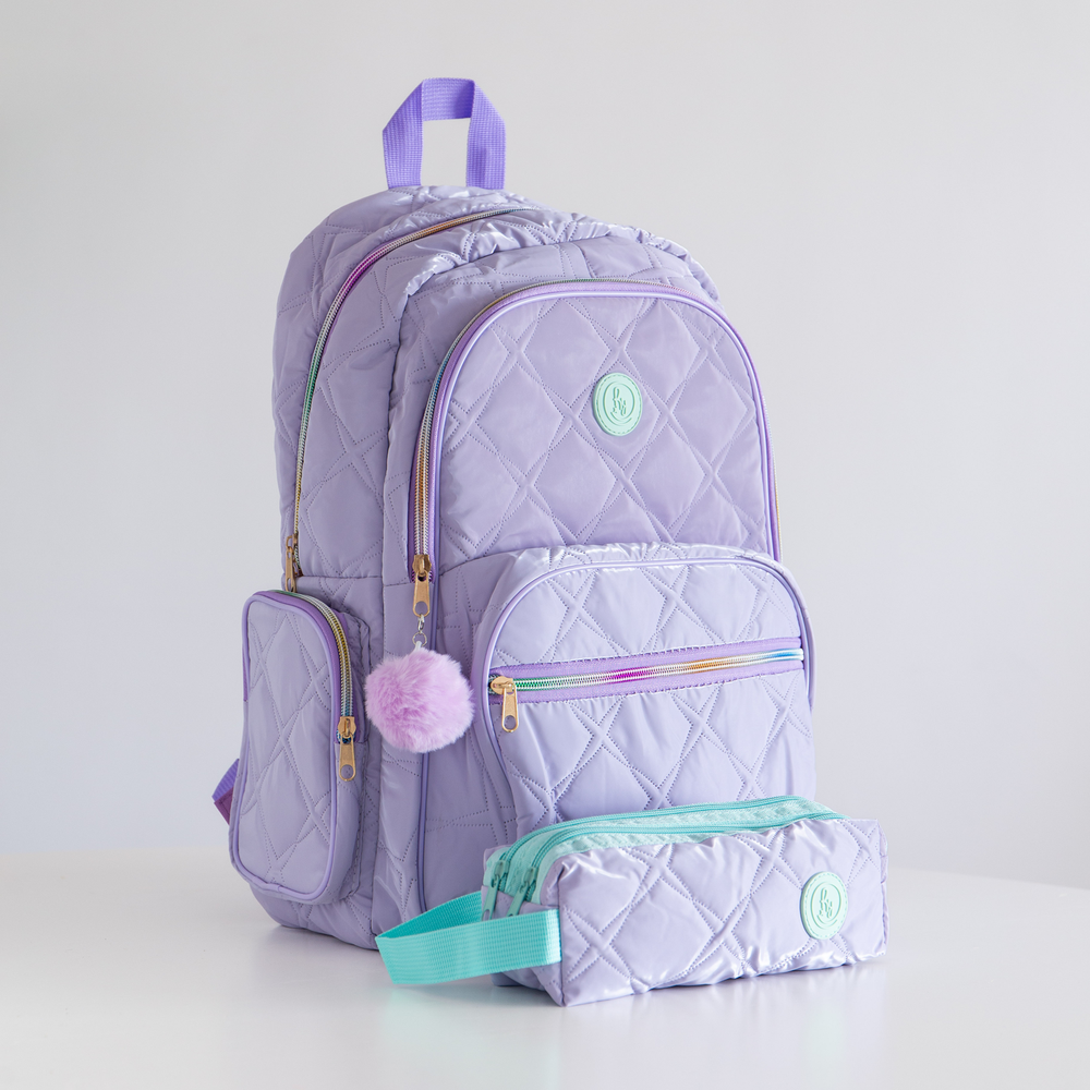 Mochila 18 pulgadas de matelassé bordado en trama de corazones y rombos.