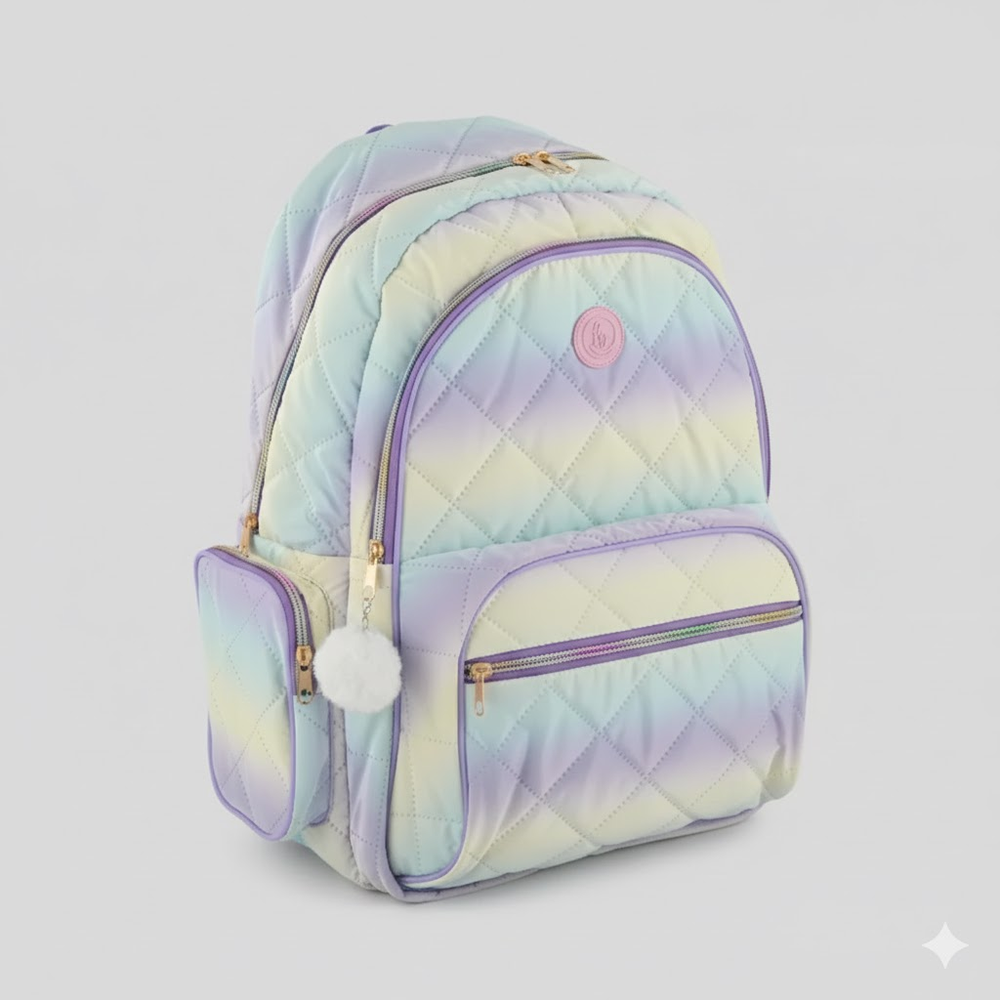 Mochila 18 pulgadas de matelassé bordado en trama de corazones y rombos.
